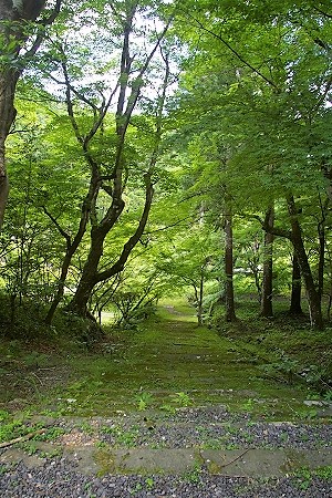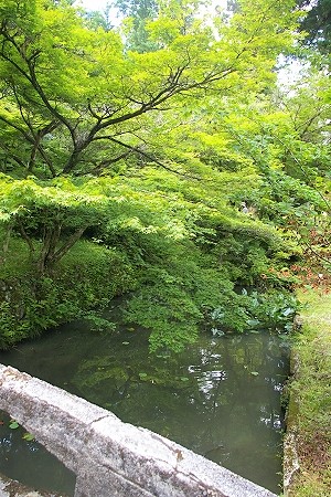 ![]() 石橋の下には大賀蓮が株分けされたそうです 苔むした階段を登と |