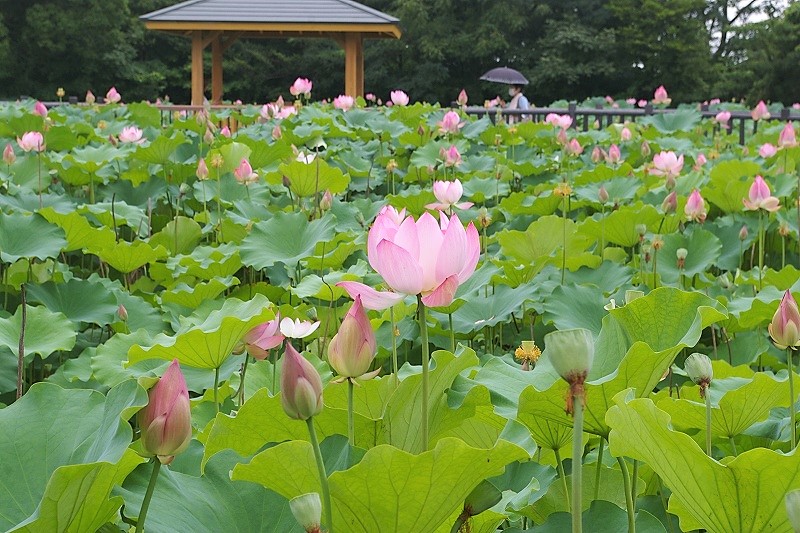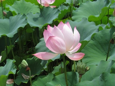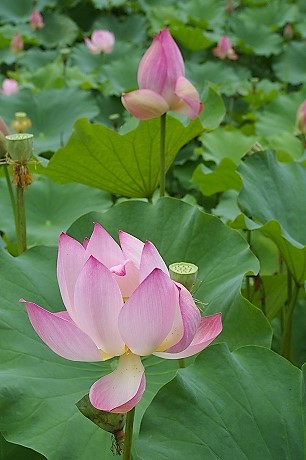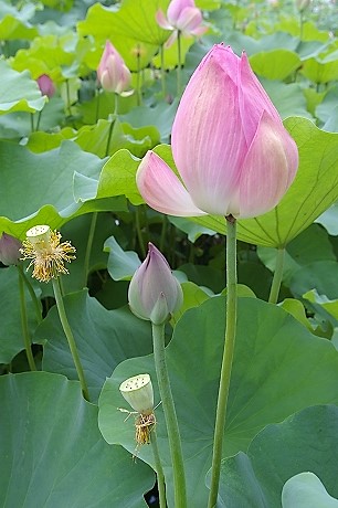 ![]() ハスの花は短命で、花びらが開きはじめてから3〜4日で散ってしまいます。 |