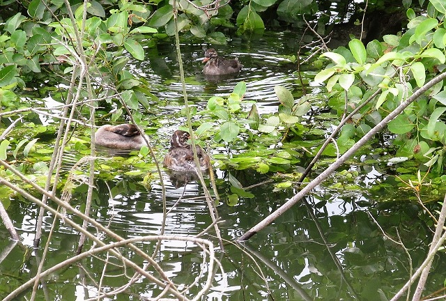 ![]() 危険(天敵)を感じたのか遊歩道下の親鳥の方に集まってきました |