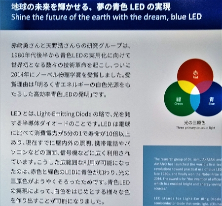 ![]() ![]() 赤崎さん1929年1月、鹿児島県生。 81年に名古屋大学工学部教授に就任し、89年にはそれまで実現は難しいとされていた高輝度の青色LED の開発に成功した。 この功績によって、名古屋大学の天野浩教授、米カリフォルニア大学の中村修二教授と共にノーベル物理学賞を受賞。 青色LEDが発明されてあらゆる色の表現ができカラフルになる凄い発明だと思っていたら、多色の色でなく 白色光をLEDで表現できるようになった技術こそが、ノーベル賞の審査基準である「人類最大の利益をもたらす発明」何だって! |