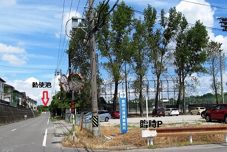 ![]() Pから500m程、勅使池(カイツブリを見た)の逆方向へ炎天下歩きます。 |