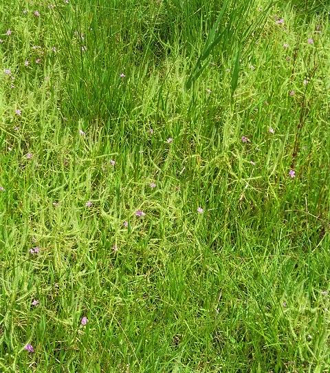 ![]() 豊明に自生する赤い花は、日本固有の新種で珍しく、他のナガバノイシモチソウと異なるそうです。 |