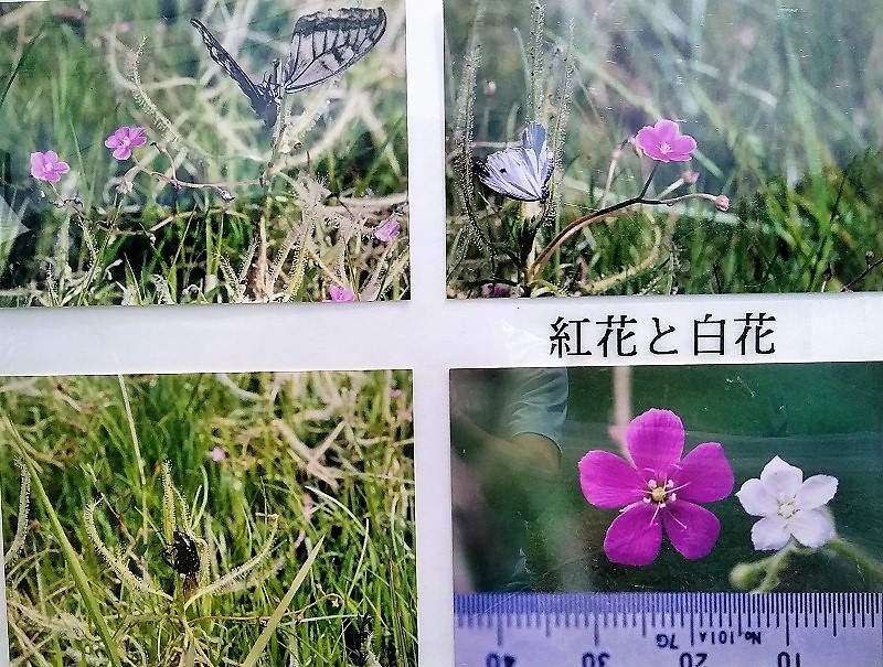 ![]() ![]() 真っ白なサギソウと赤色(ピンクに近い)ナガバノイシモチソウ |