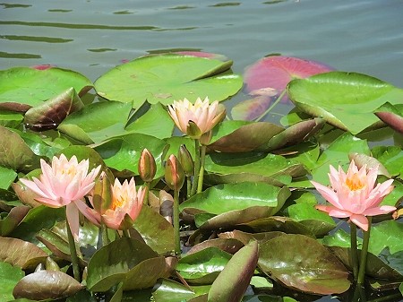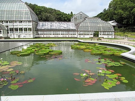 ![]() 手前が睡蓮、奥に7年振りの展示オニバスが見えます。 |