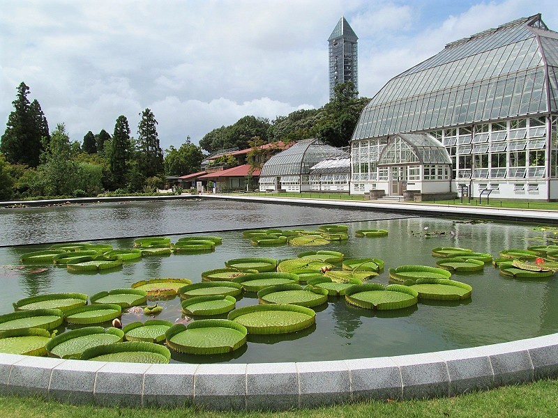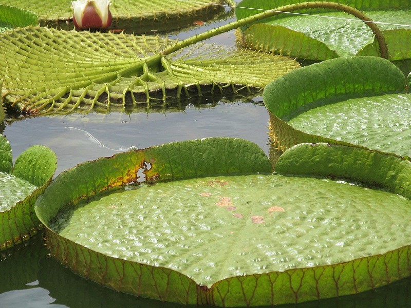 ![]() 大きな葉は直径1.5mにも、幼児が乗れるくらいです。 8月中旬〜9月末に紫色の花を咲かす! |