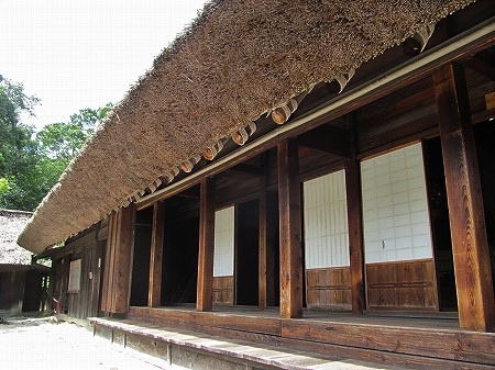 ギボウシ園の人が写真撮っていたので質問したら>茅葺の藁わらをカラスが巣作りに抜いていったり、鳥が巣を造ったりして傷むと! |