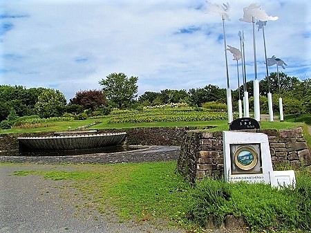 ![]() うさぎのモニュメントと花畑 |