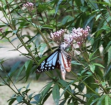 ![]() フジバカマの花に寄ってくるアサギマダラ あさぎ(浅葱・浅黄)色は「新選組」の隊士の服の色(安物色?)です。 |