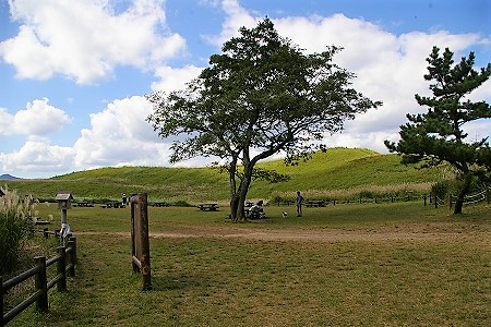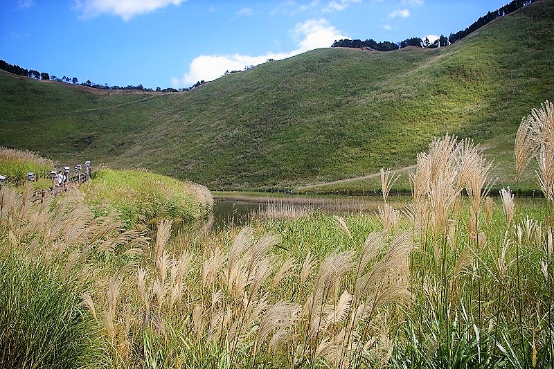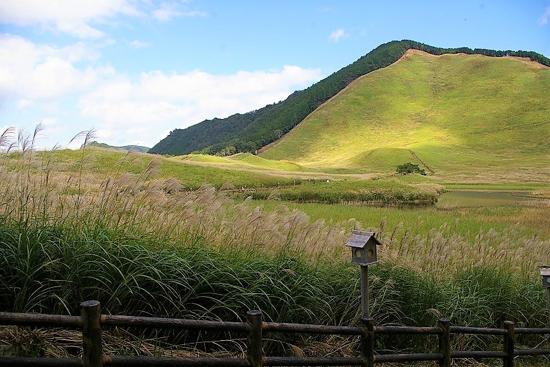 ![]() 倶留尊山のふもとに広がる広大な高原を後に・・・ |