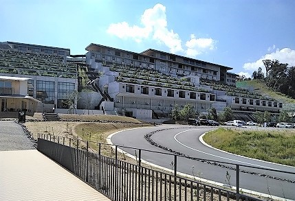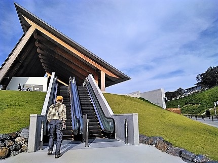 ![]() 夏日になった10月の広い敷地を歩きくたびれ、最後は車でホテルのPに迎えに来ました。 |