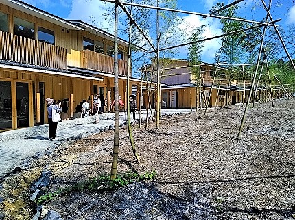 ![]() 菓子店『井村屋』で甘い小豆入りをゲット! まだ植栽したばかりの竹林が寂しい! |
