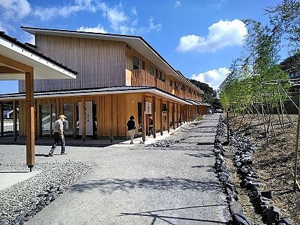 ![]() 左奥の施設(旅籠ヴィソン&有名店)には道路をまたぐブリッジを渡 |