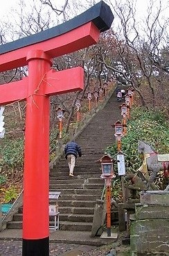 ![]() 2:20〜2:50 高山稲荷神社 男坂は急な階段です 元々は三王神社が祀られ、その後江戸時代に稲荷神社が創建され、 江戸時代の稲荷信仰の隆盛とともに稲荷神社が繁栄し、元々の山王神社が後退したものと考えられる。 |