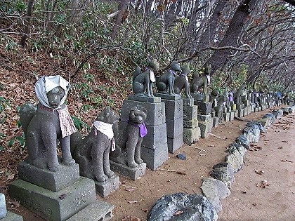 ![]() 農耕に従事した人達が奉納された狐(神様のお使い)の狐像が並ぶ・・・ |