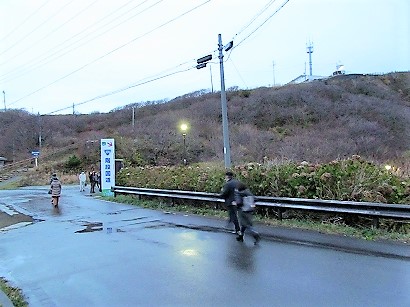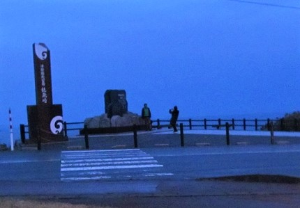 ![]() 夕暮れの竜飛崎(石川さゆりの津軽海峡冬景色が流れます。 以前は24時間ボタンをお押せば流れたが、地元の人達から夜、早朝はうるさいので中止となる) |