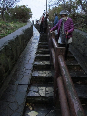 ![]() ![]() 小雨の夕暮れにNakamura夫妻が急いで階段国道を体験 |