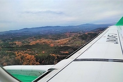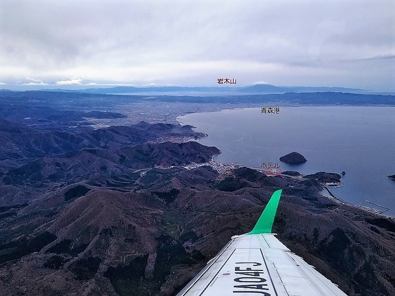 ![]() 青森空港へ着陸態勢(2泊目のホテルも見えます) |