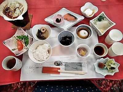 ![]() 朝食を済ませ |