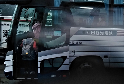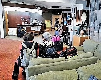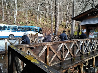 ![]() ロビーで出発を待ち、奥入瀬渓流へ向かいます。 |