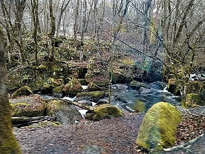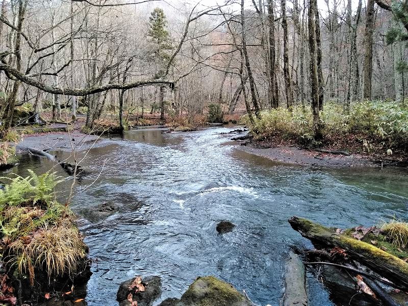 ![]() 水量の少ない奥入瀬渓流(夏の涼しさに変わり、身の引き締まる流れです) |