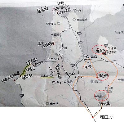 8:15ホテル>奥入瀬渓流>十和田湖(乙女像)>酸ヶ湯温泉>18:55青森空港>FDA368>20:25小牧空港>自宅