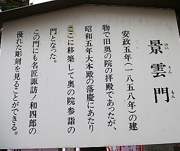 ![]() ![]() ![]() 《奥の院》 龍の彫刻は諏訪の和四郎の一代の傑作と言われる |
