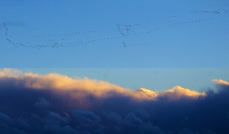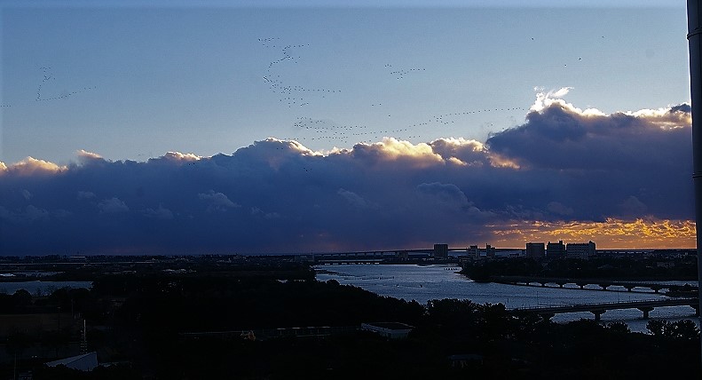 ![]() ホテルの部屋から南の空には鳥の大群が、R1浜名バイパス(新井弁天橋げたが見えます)の上空です |