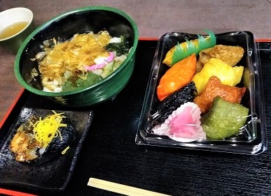 ![]() 門前店での稲荷ずしはカラフル! |