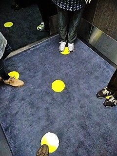 ![]() エレベーター内はソーシャルディスタンス |
