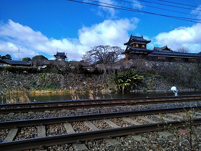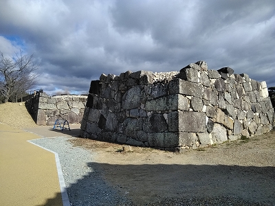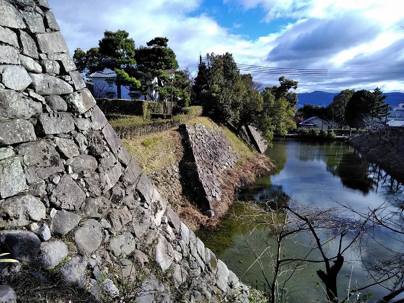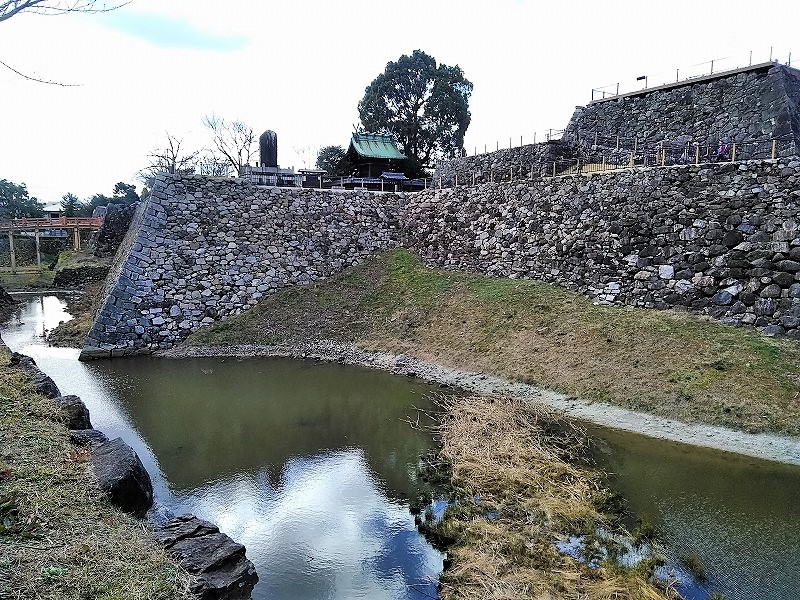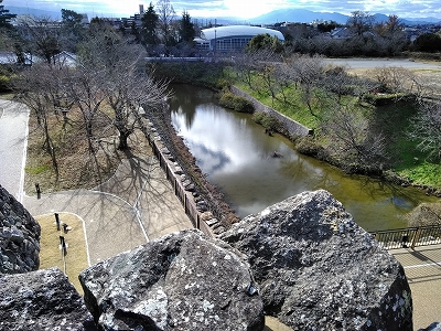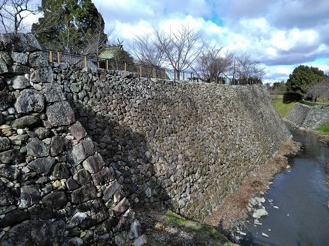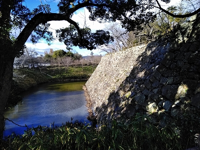 ![]() 鳥でぐらいだと思っていましたが、立派な石垣と堀が見えます。 |