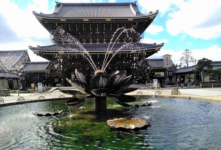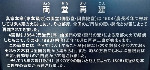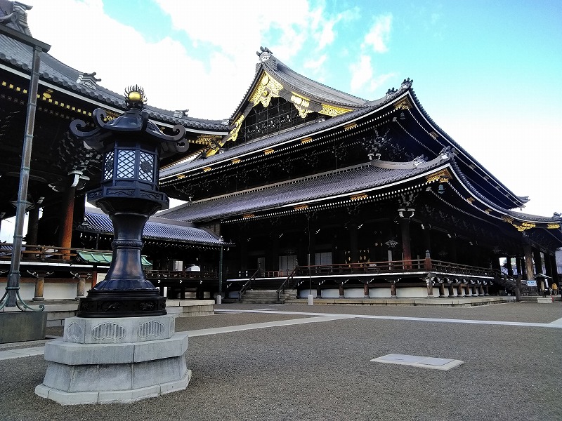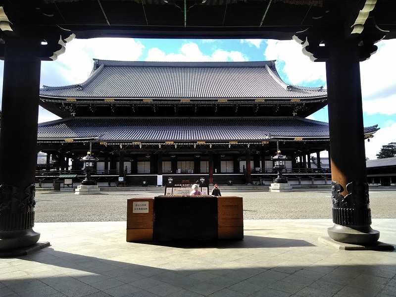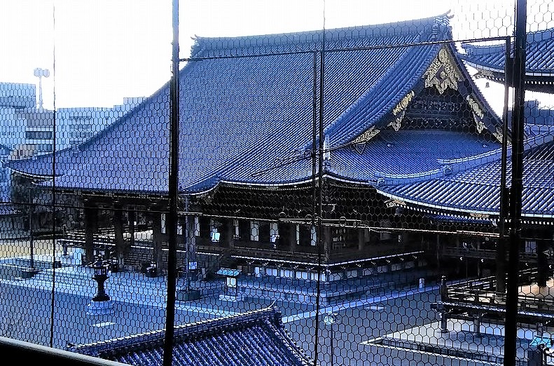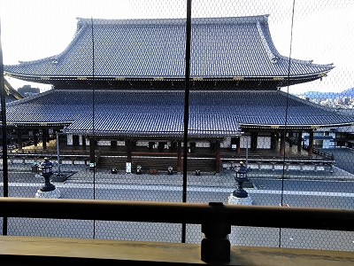 ![]() 御影堂 世界最大級の木造建築 正面76m、側面58m、高さ38mは1895(明治28)年に再建 |
