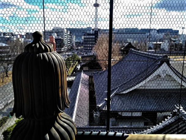 ![]() 南に京都タワーが見えます(仏前のローソクに見えますかね?) |