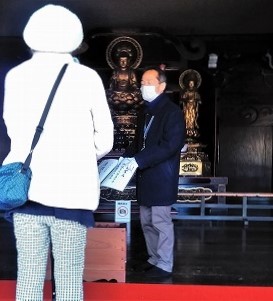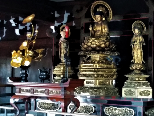 ![]() 非公開の山門楼上の三尊像 |