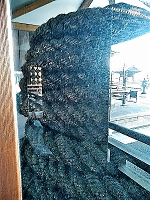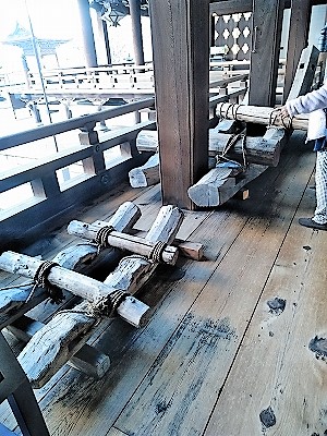 ![]() 運搬に使われたそりと髪の毛を編んだ極太のロープ(信仰の力は大きいですね) |