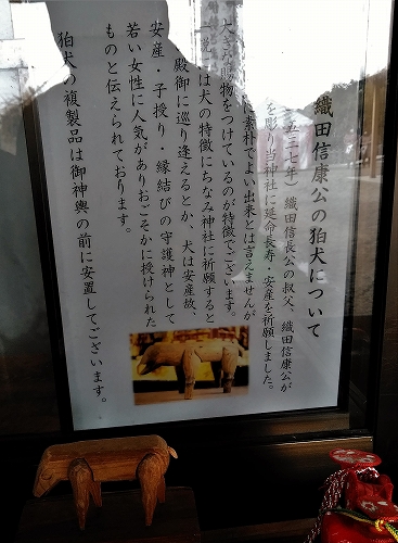 ![]() 織田信康が自ら手彫りの狛犬一対を奉納して安産祈願したことから、安産、子授けにご利益があるとされる。 |