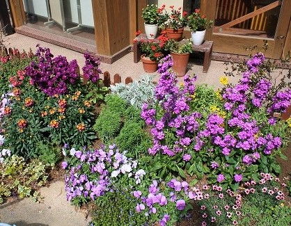 ![]() 花の手入れをする方と談笑(綺麗に手入れされているから見応えがあります) |