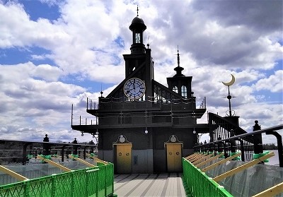 ![]() エレベーターの棟は19世紀末の空想科学的要素を取り入れている |