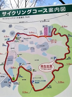 ![]() 1周5.1kのアップダウンが多いサイクリングロード(\100)を2週10,2k、孫と走る。 |