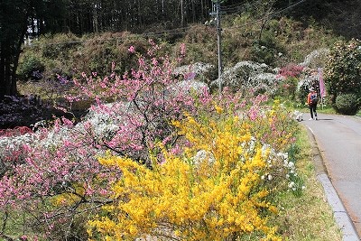 20分待機でP\1000(\100お買物券付き) 片道1Kの坂道を・・・ 白色が多い枝垂れももを眺めて 心が踊っています 夏日になった上中です シャクヤクの花は蕾 しばし見入る 駐車場に戻り、五平餅、みたらし団子を頂きました