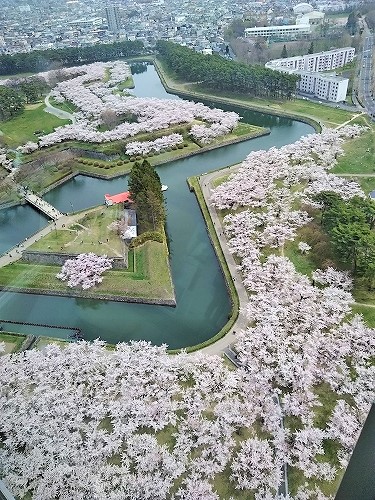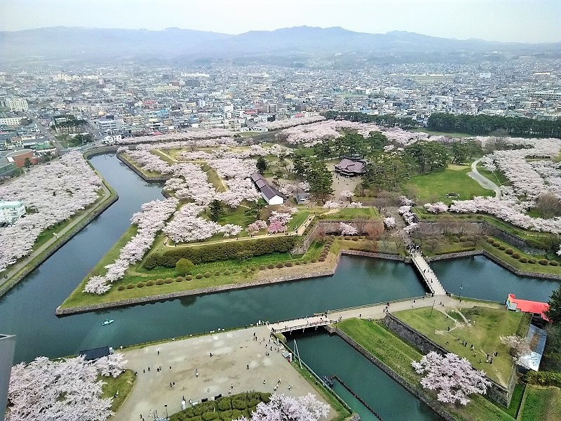戊辰戦争(1868年から翌年にかけて行われた新政府軍の日本統一戦争)の舞台となった五稜郭の桜