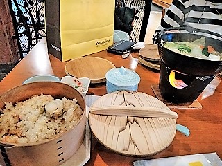 ホテルからバスで洞爺湖畔まで夕食に(別料金\9000出せばホテルで食事) スイーツは部屋で!