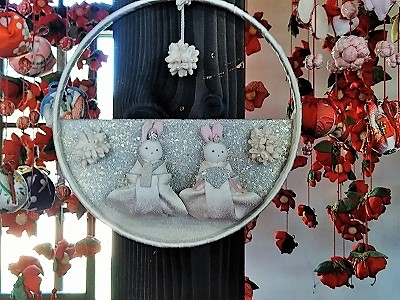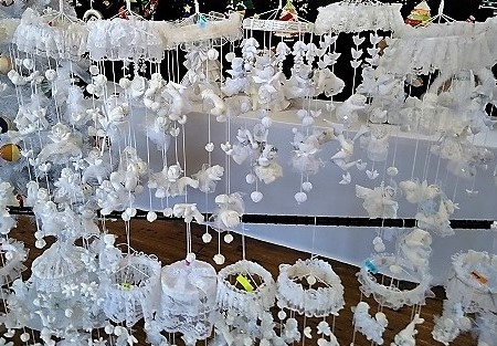 ![]() つりり飾りの生徒さんの作品が並ぶ |