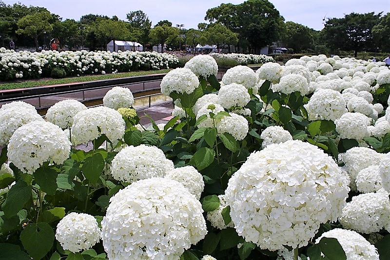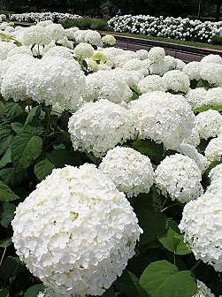 ![]() ラベンダーの前に現れた真っ白な紫陽花が満開 |