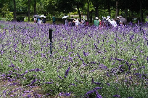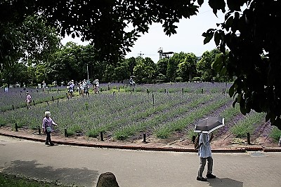 ![]() “紫色の花穂が風に揺れる荒子川公園のラベンダー園”はほのかな香りに包まれ、目にも鮮やかでした。 |