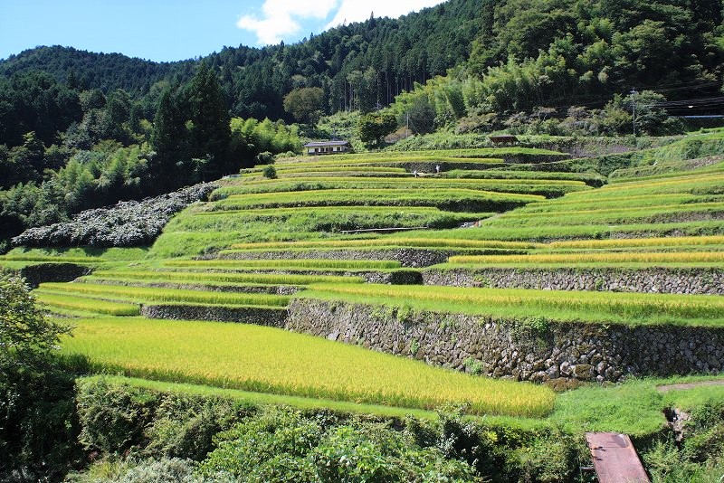 ![]() 標高410mから610mの山の斜面に360枚の棚田が扇状に広がっています。 |