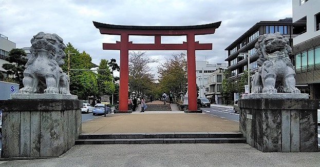 ![]() 二の鳥居(一の鳥居は由比ガ浜に下ると石造りの鳥居がある) |