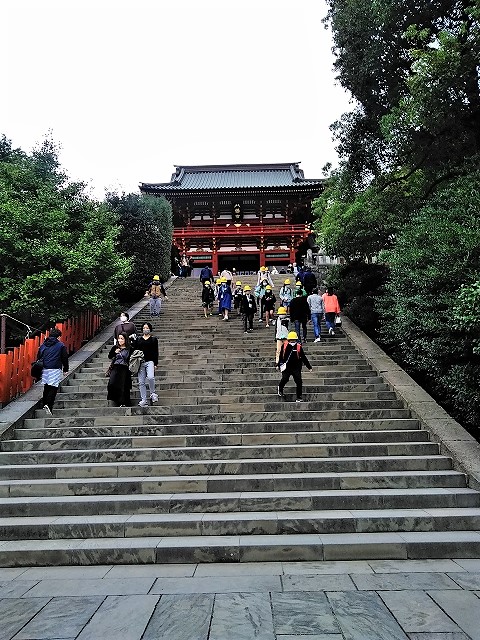 ![]() 若宮大路の中央の断葛だんかずらを歩く (葛石 かずらいし を積んで一段高くつくった道) 段々狭くなっている |