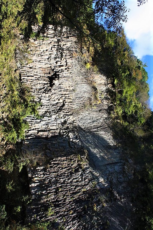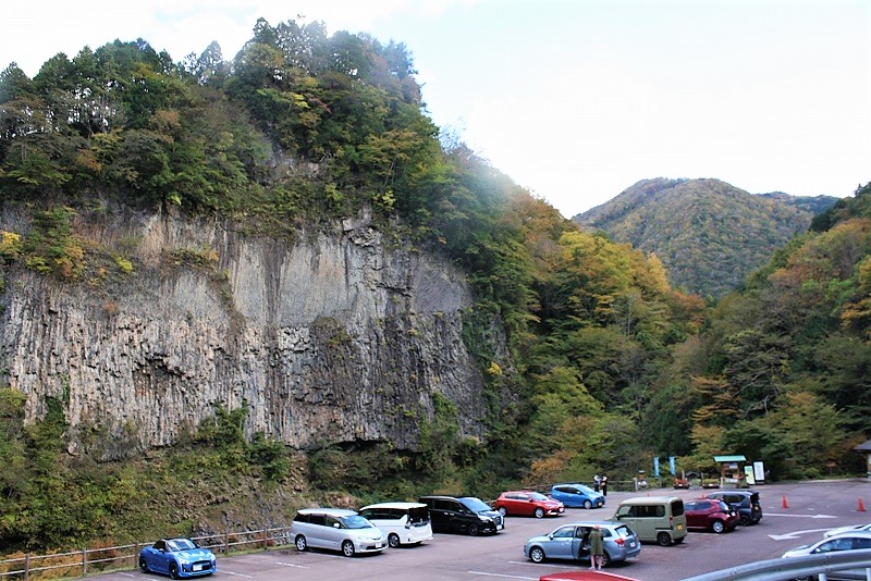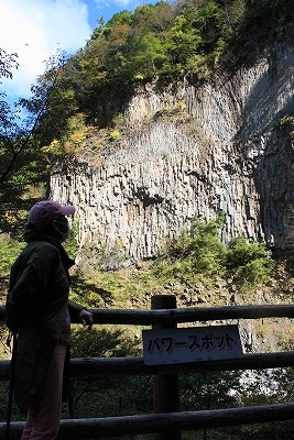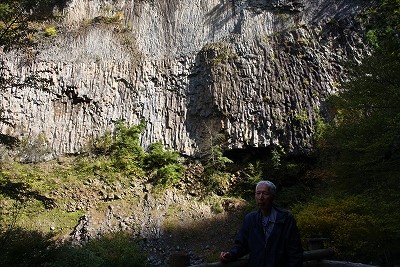 ![]() 岐阜県下呂市小坂町落合 約5万4千年前の溶岩(安山岩質)で形成された日本一の溶岩流の断面です。 同じ様な岩壁が上流17キロに渡って続いています。 |