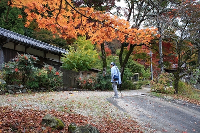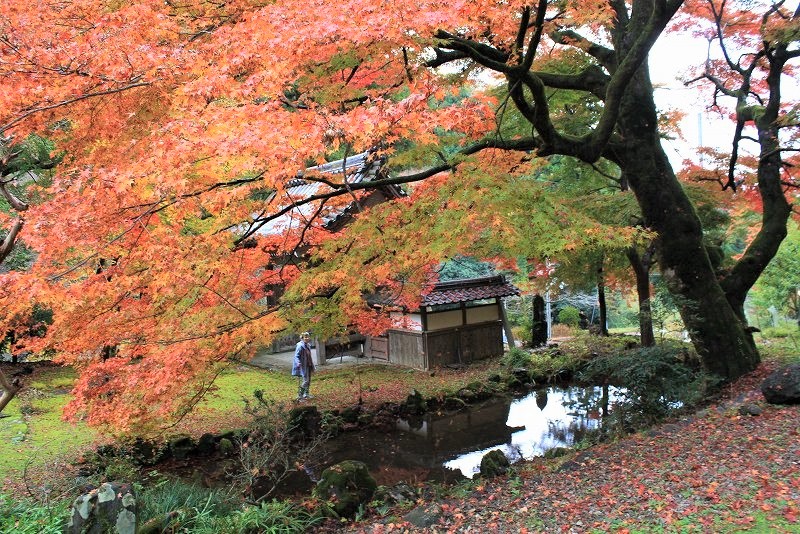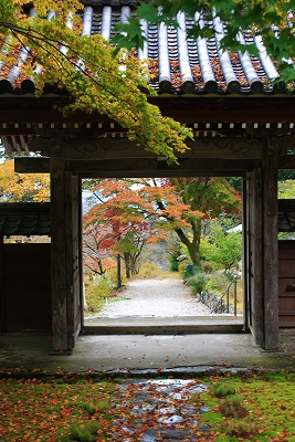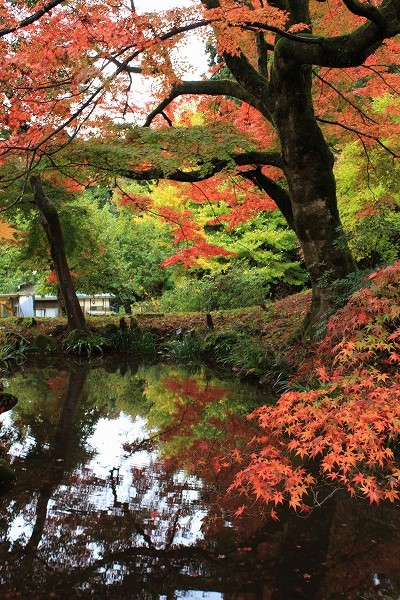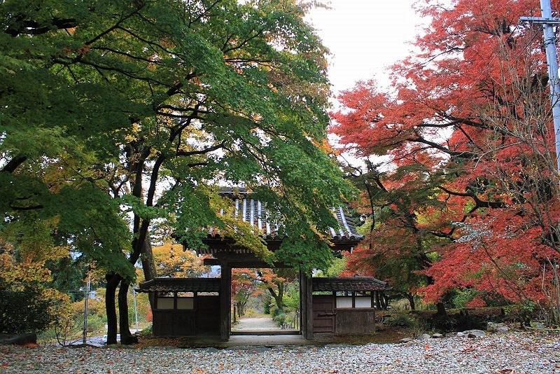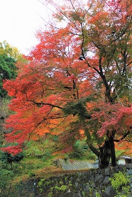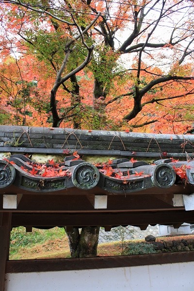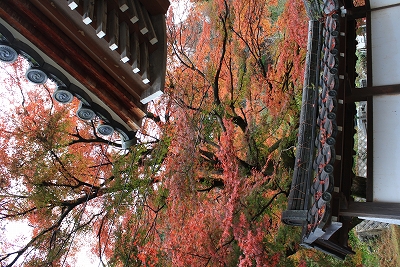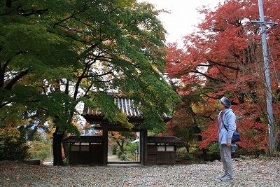 ![]() 山門脇の大モミジが1本緑のまま・・ |