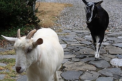 ![]() 眼光鋭い番やぎの白ヤギも表れた。 メェ〜〜! |